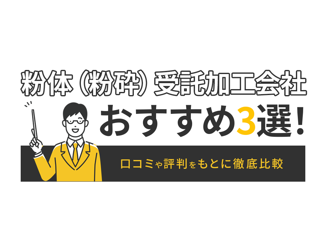 そこで当サイトでは、技術力や信頼性など、こだわりで選ぶおすすめの粉体(粉砕)受託加工会社や、受託加工を依頼するうえで知っておきたいことのほか、WEBアンケートを実施して実際に粉体(粉砕)受託加工会社に依頼した企業の口コミや評判についてもまとめてご紹介していますので、ぜひ参考にしてください。そして、自社に最適な加工をしてくれる会社を見つけましょう。